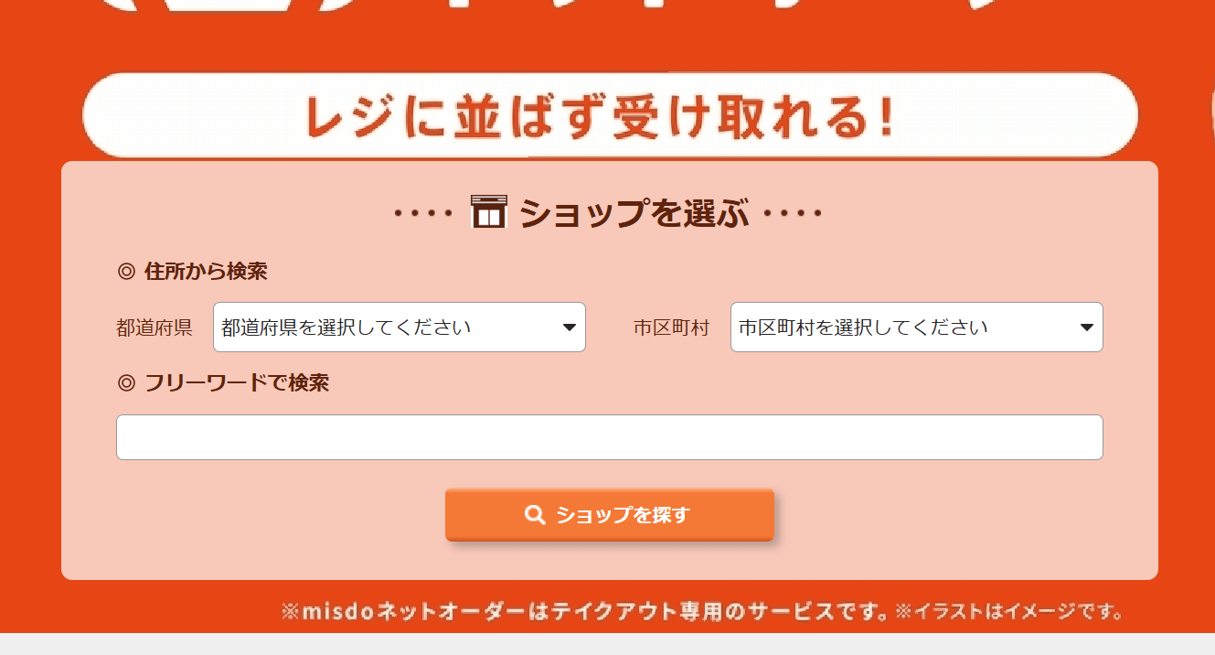 受取店舗を選ぶ(都道府県と市町村だけで検索可)