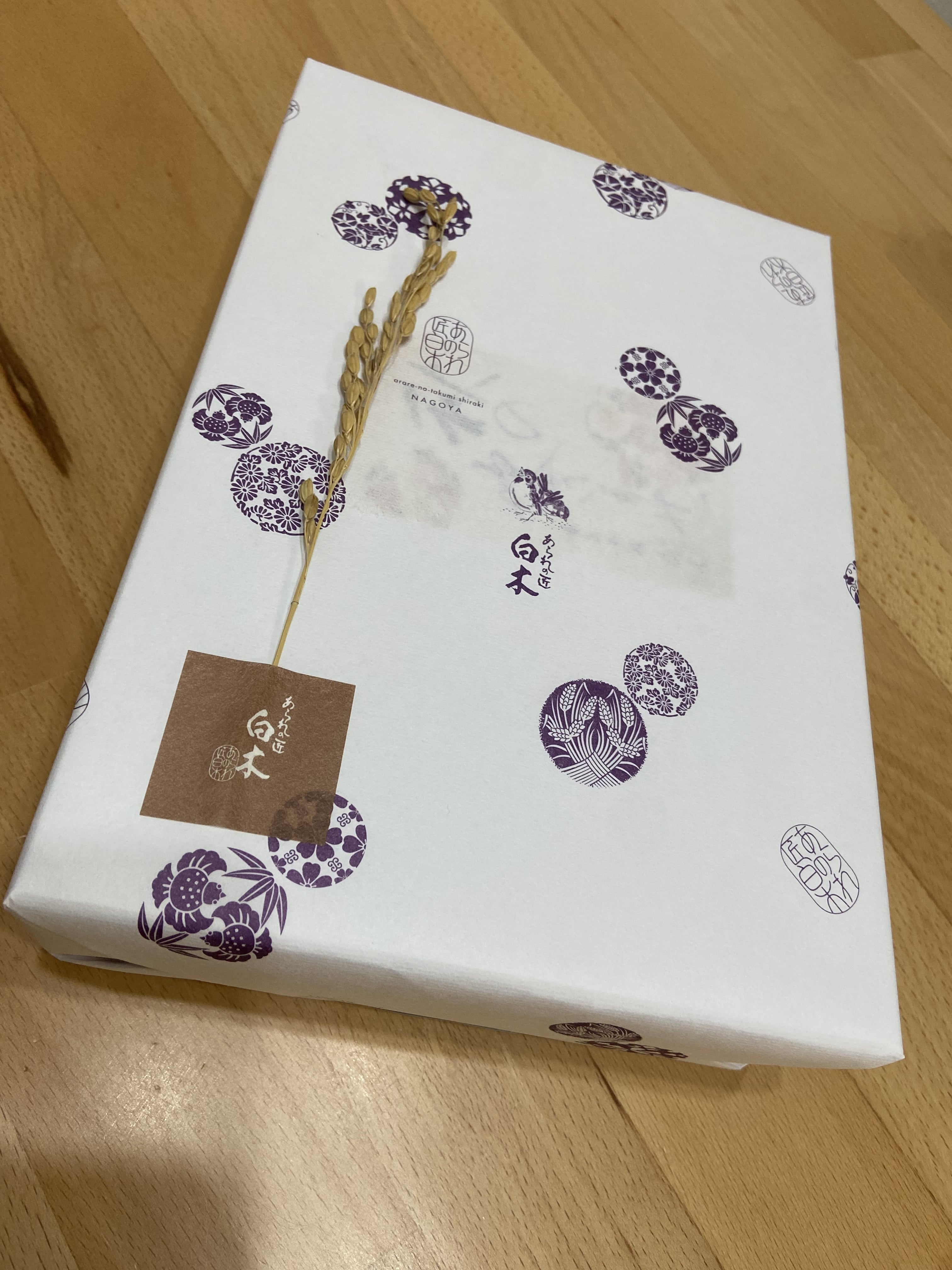 包装が美しいですね。そして何より、あられのお菓子に稲穂とは粋ですね!
