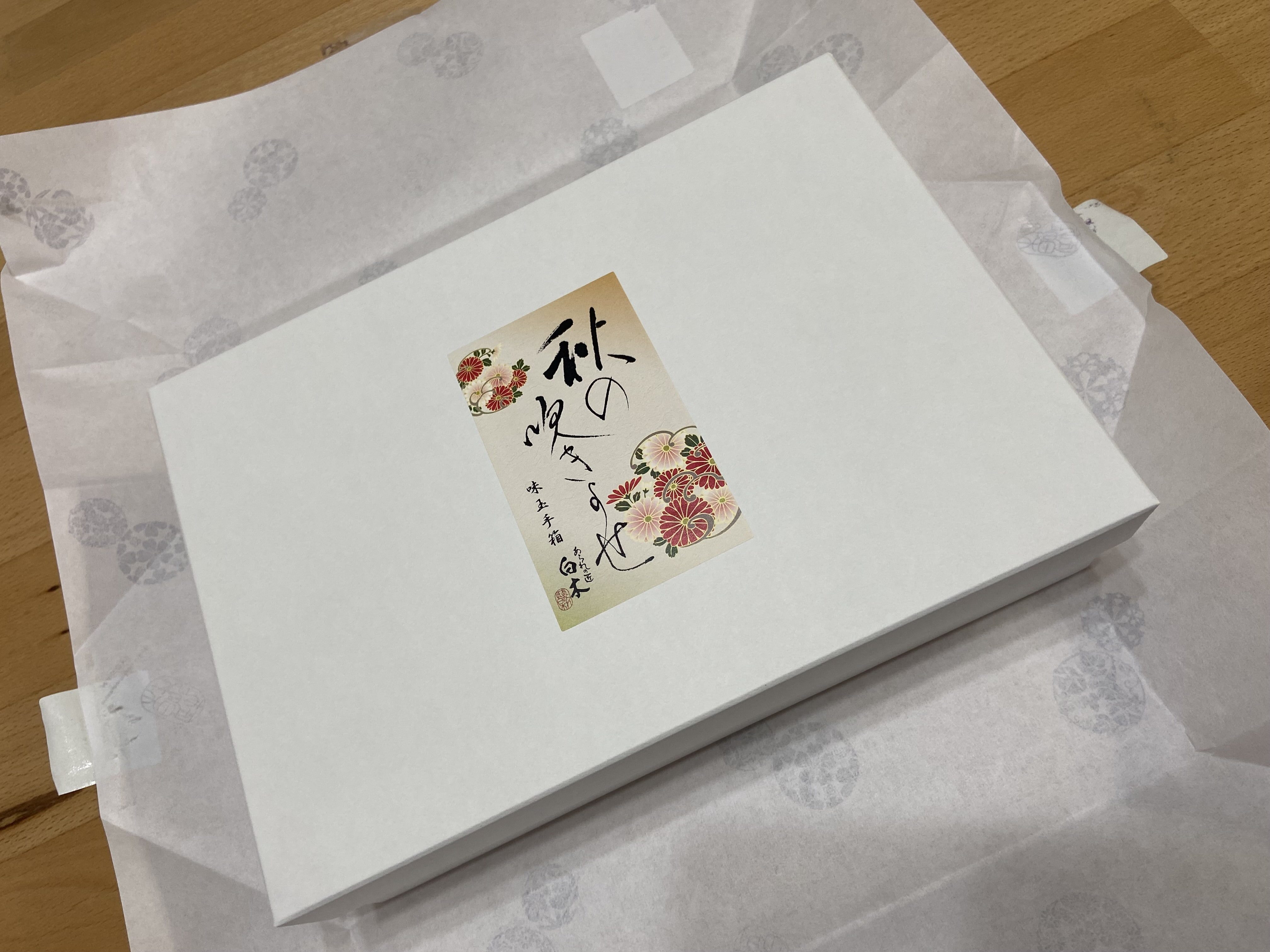 秋を感じさせる菓子折りに、頂く側も心が弾みますね!