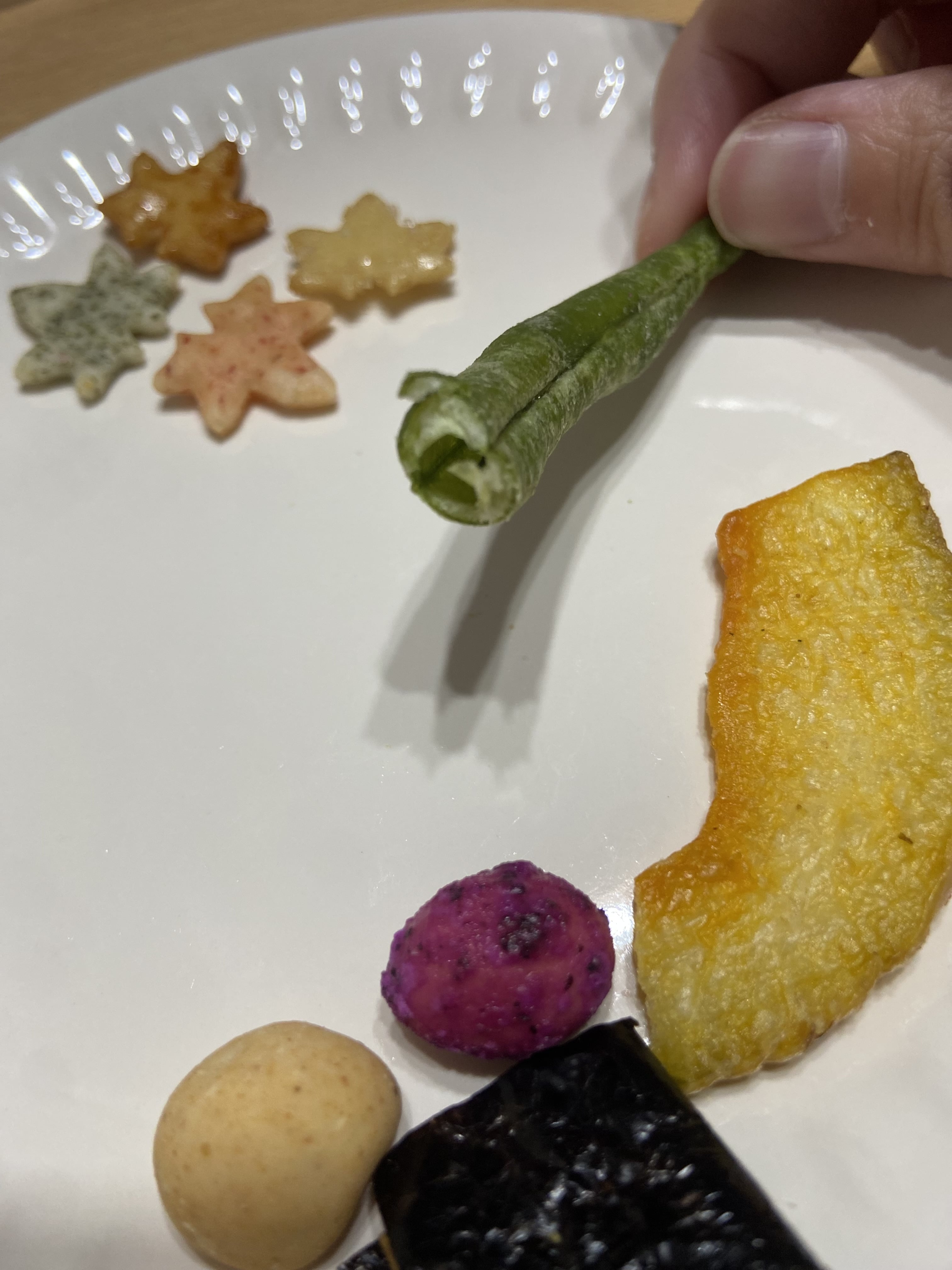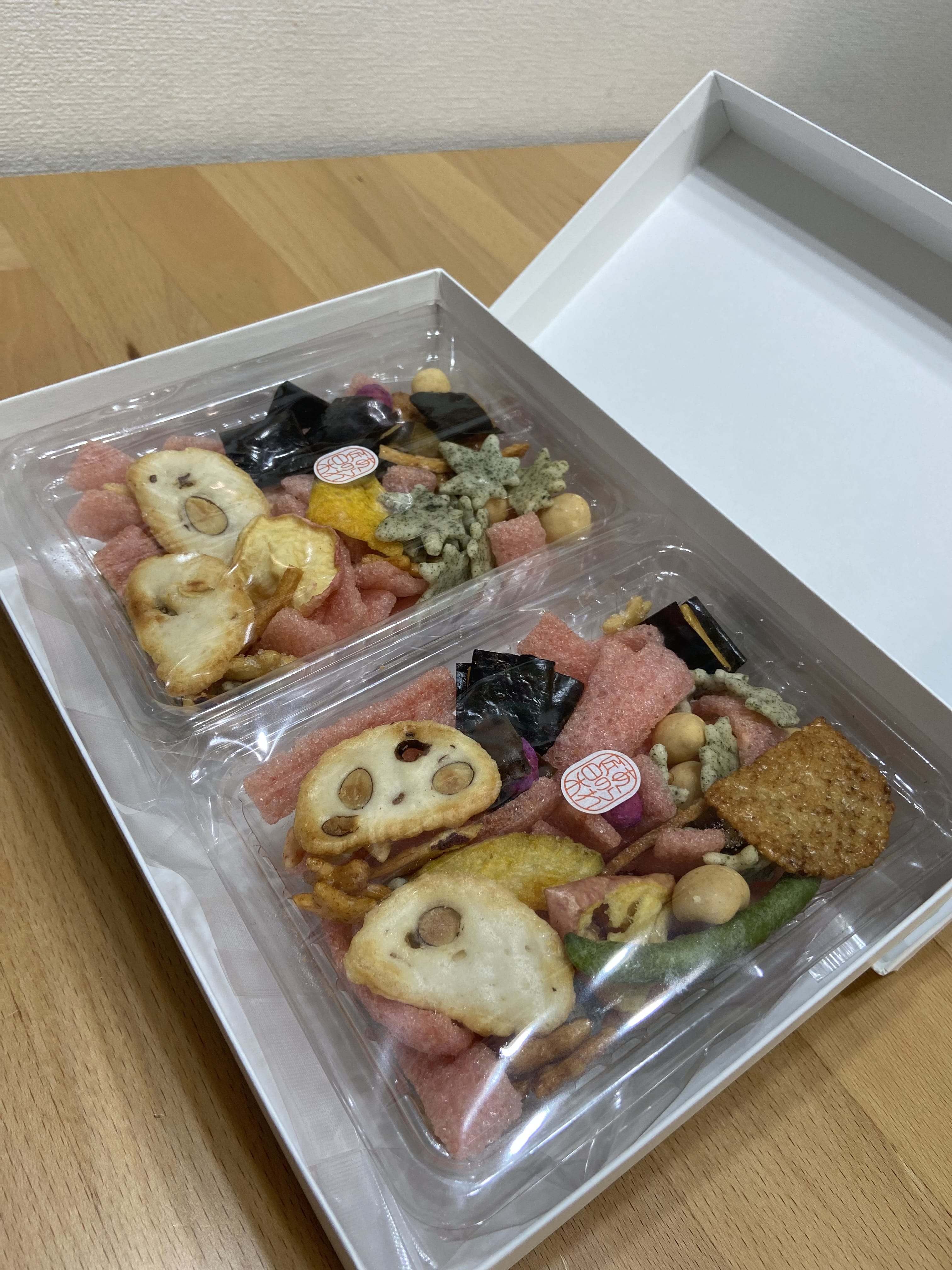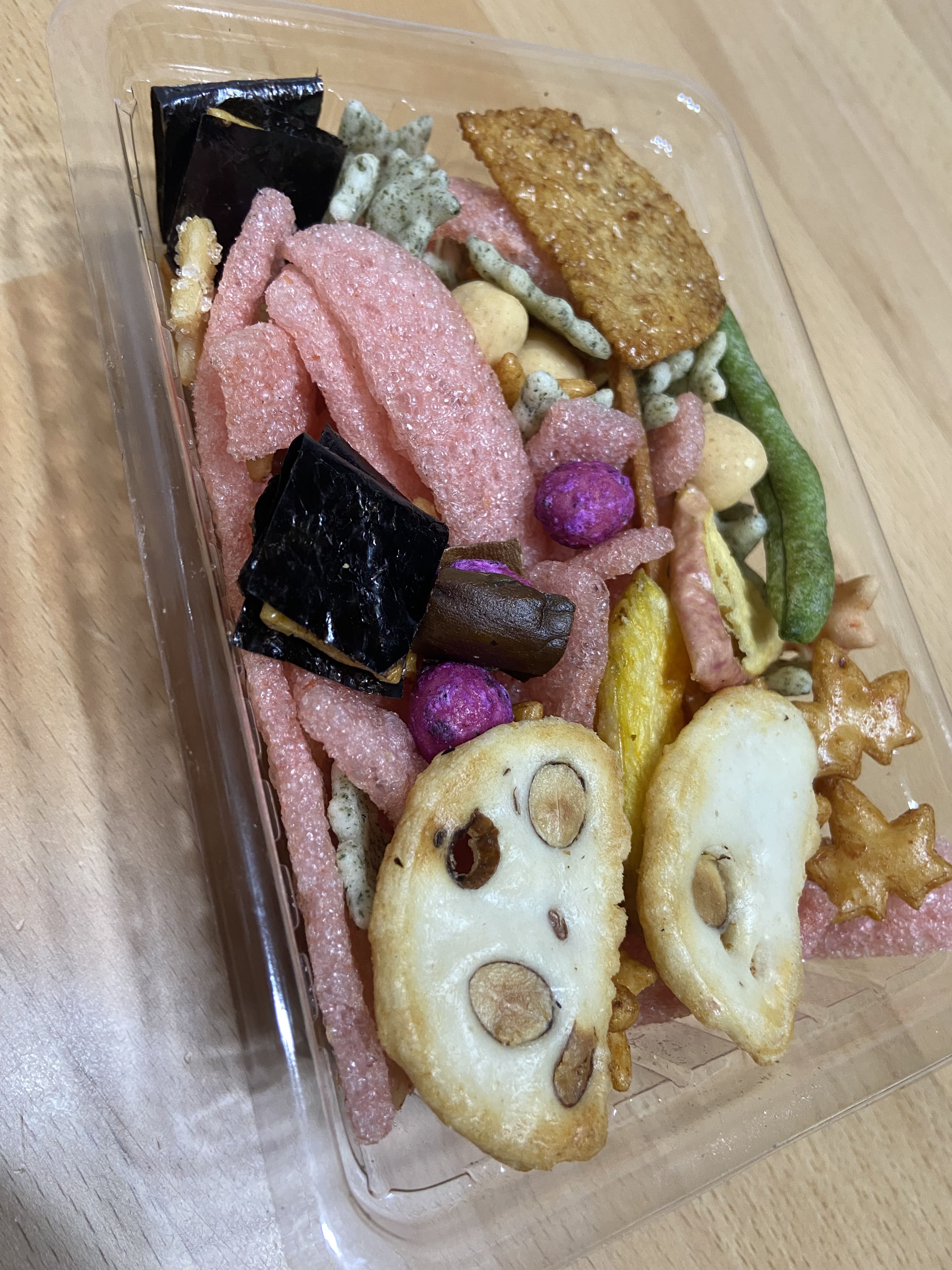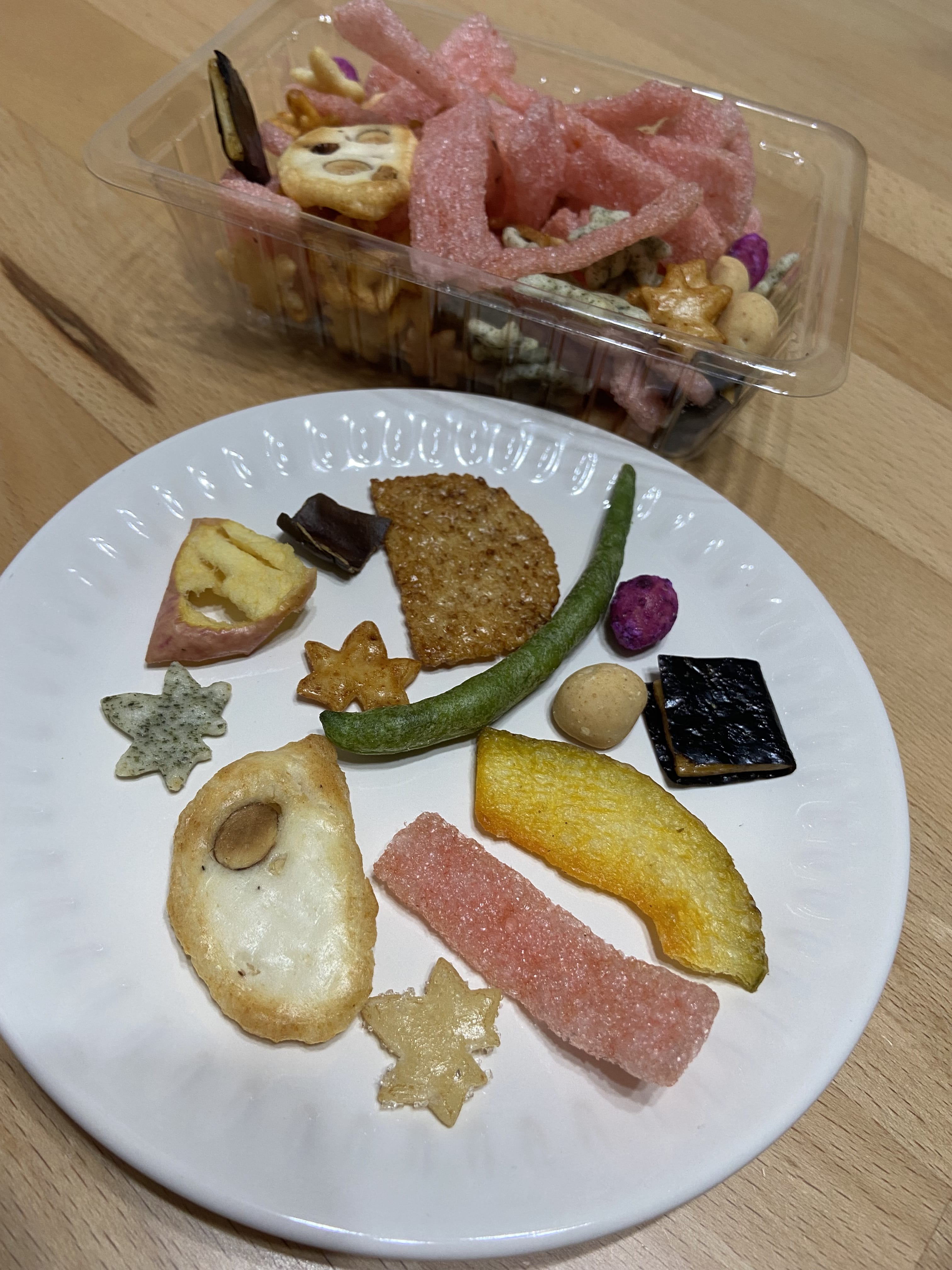 いんげんのフリーズドライがおかきに入ってるってすごくないですか?色合いで入れようと思ったのかな?