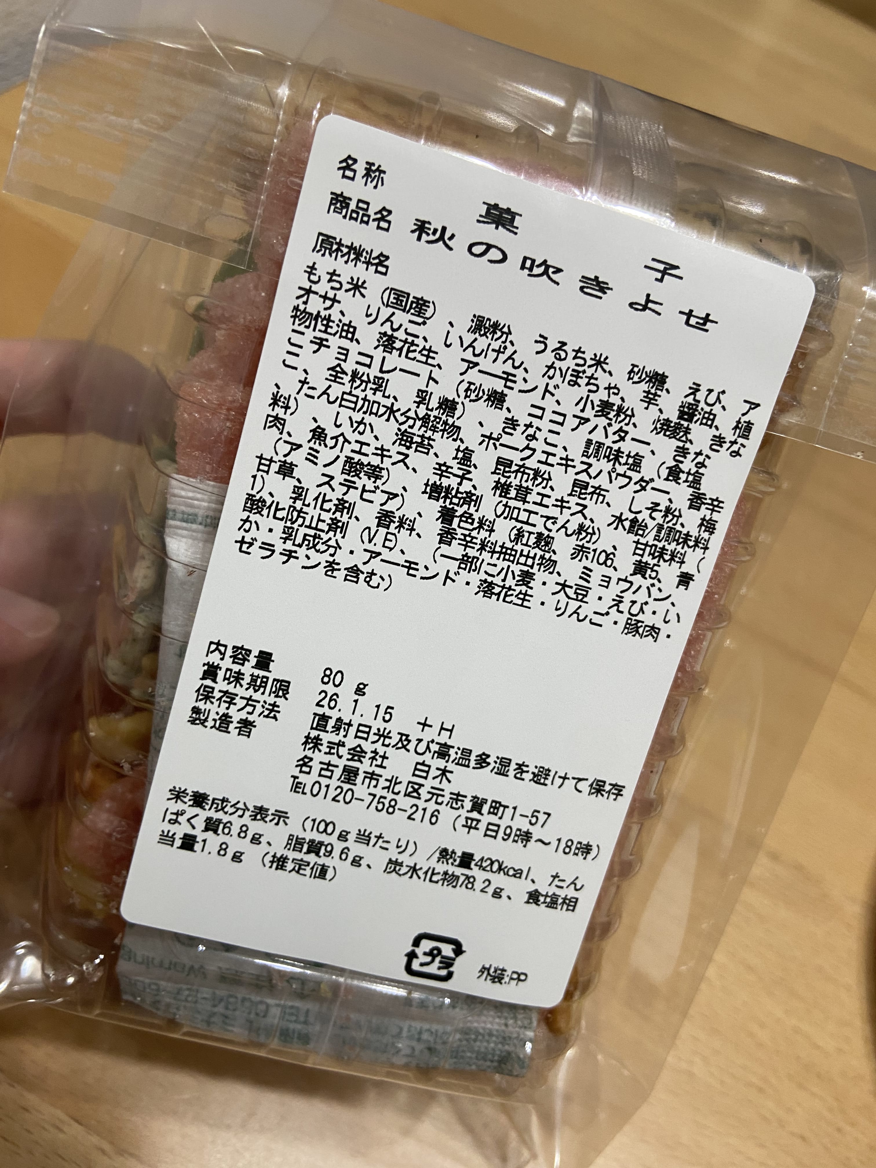 秋の吹きよせの名に相応しい、ピンク色のあられや、紅葉の形をしたようなあられ、緑色のいんげん?!えっ野菜のフリーズドライ??すごーい。そして色合いが綺麗~♡と、興奮が収まりませんでした。笑
