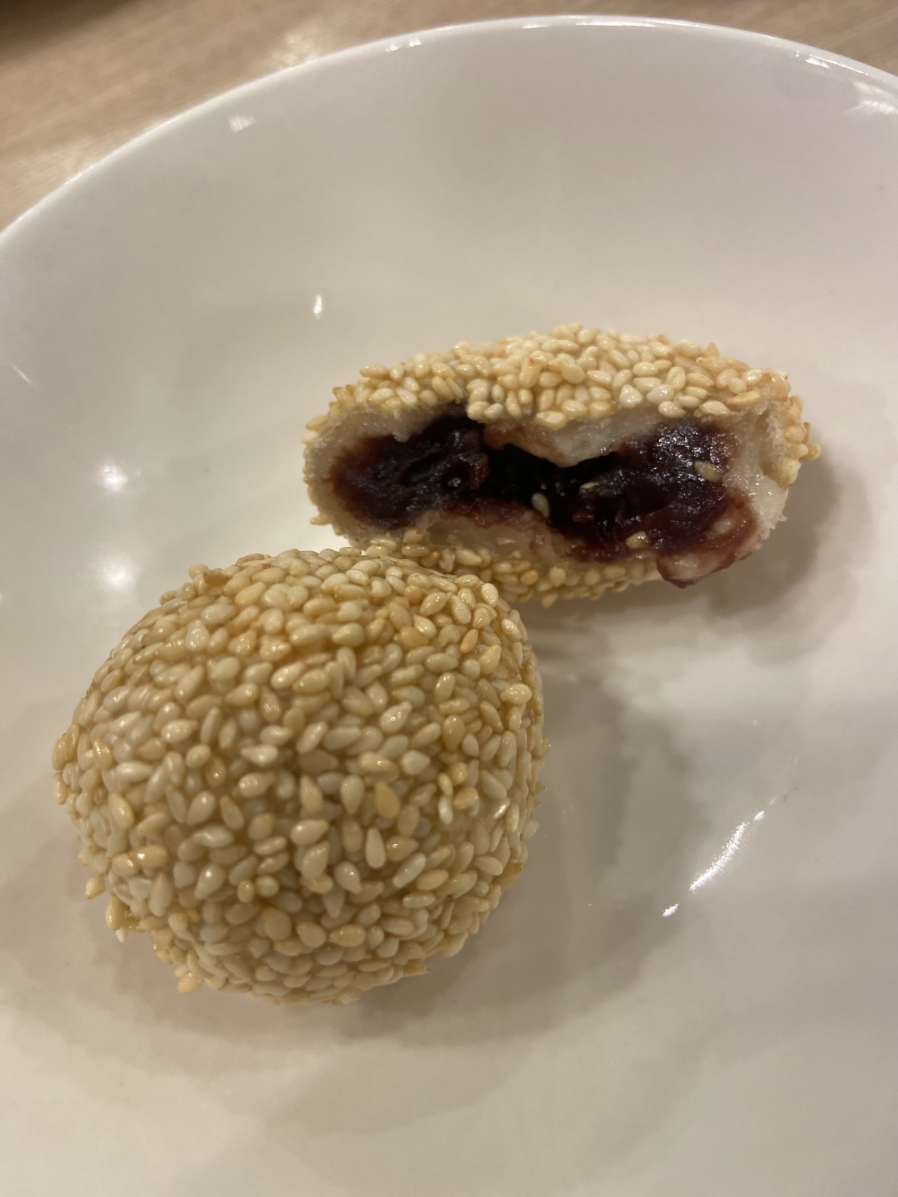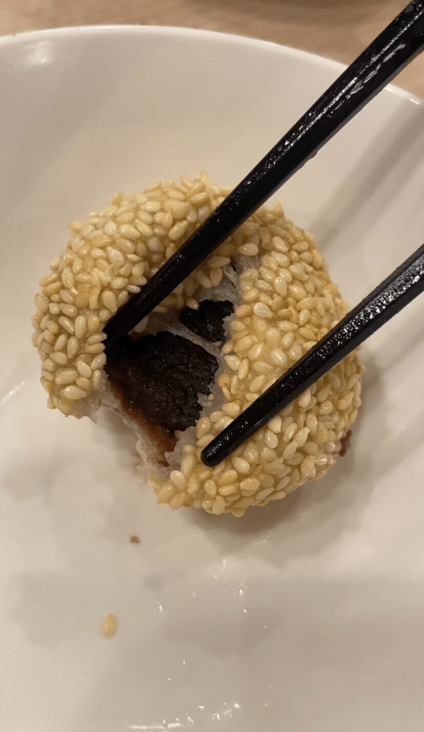 ごま団子は、テーブルに運ばれた瞬間からふわっと広がる“ごまの香ばしさ”が印象的でした。