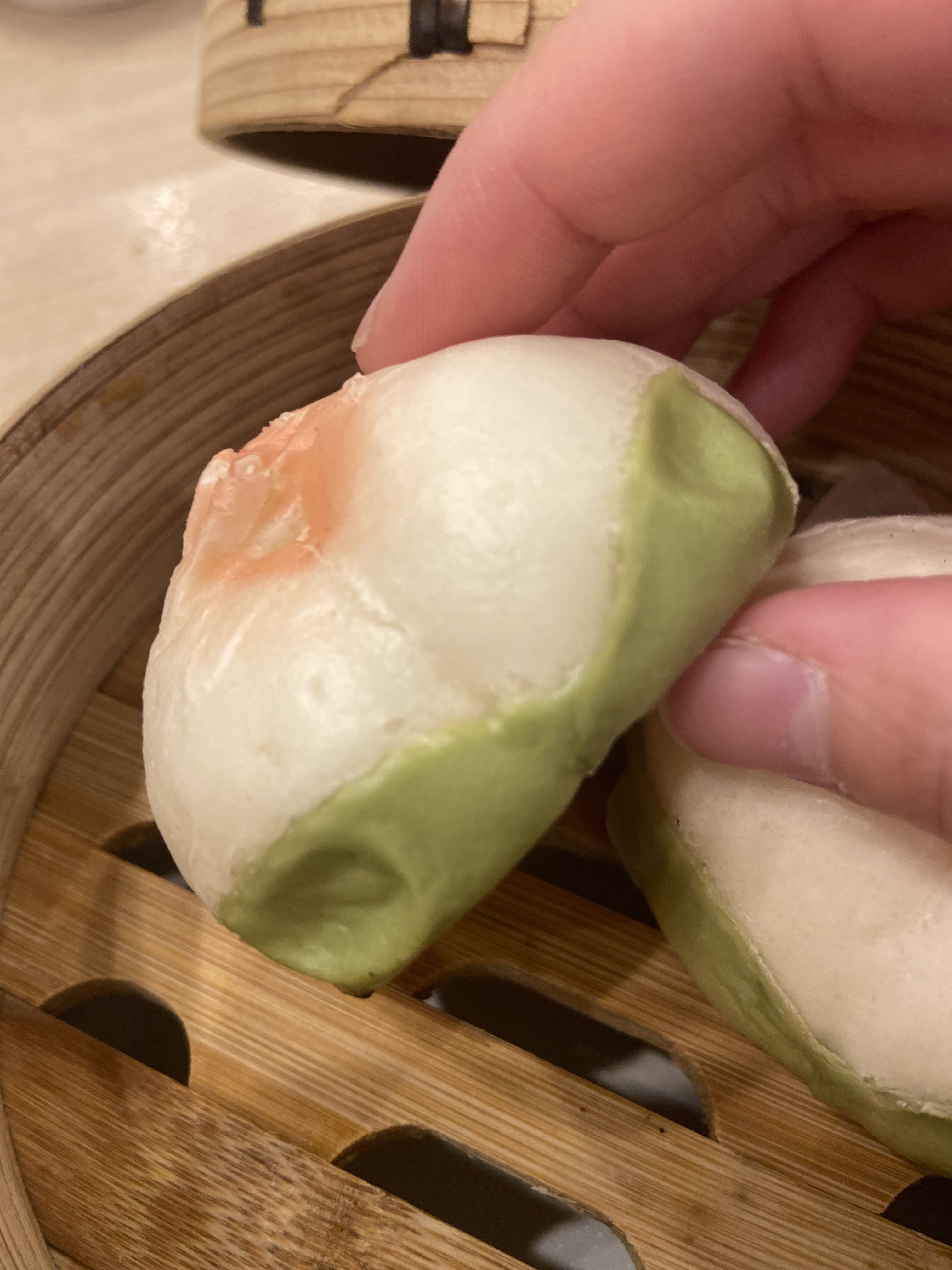蒸したての桃まんは、運ばれてきた瞬間にふわっと湯気が立ちのぼり、思わず手を伸ばしたくなる可愛らしいビジュアル。