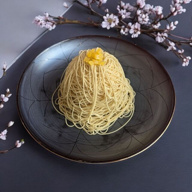 こちらでは、モンブランの上の和栗をペースト状にした、搾りたてのなめらかな、まさに絹糸のような糸状のペーストがふんわりと、モンブランそのものにかけられて盛られており、繊細な絹糸に魅了されている方、続出のようです・・・!