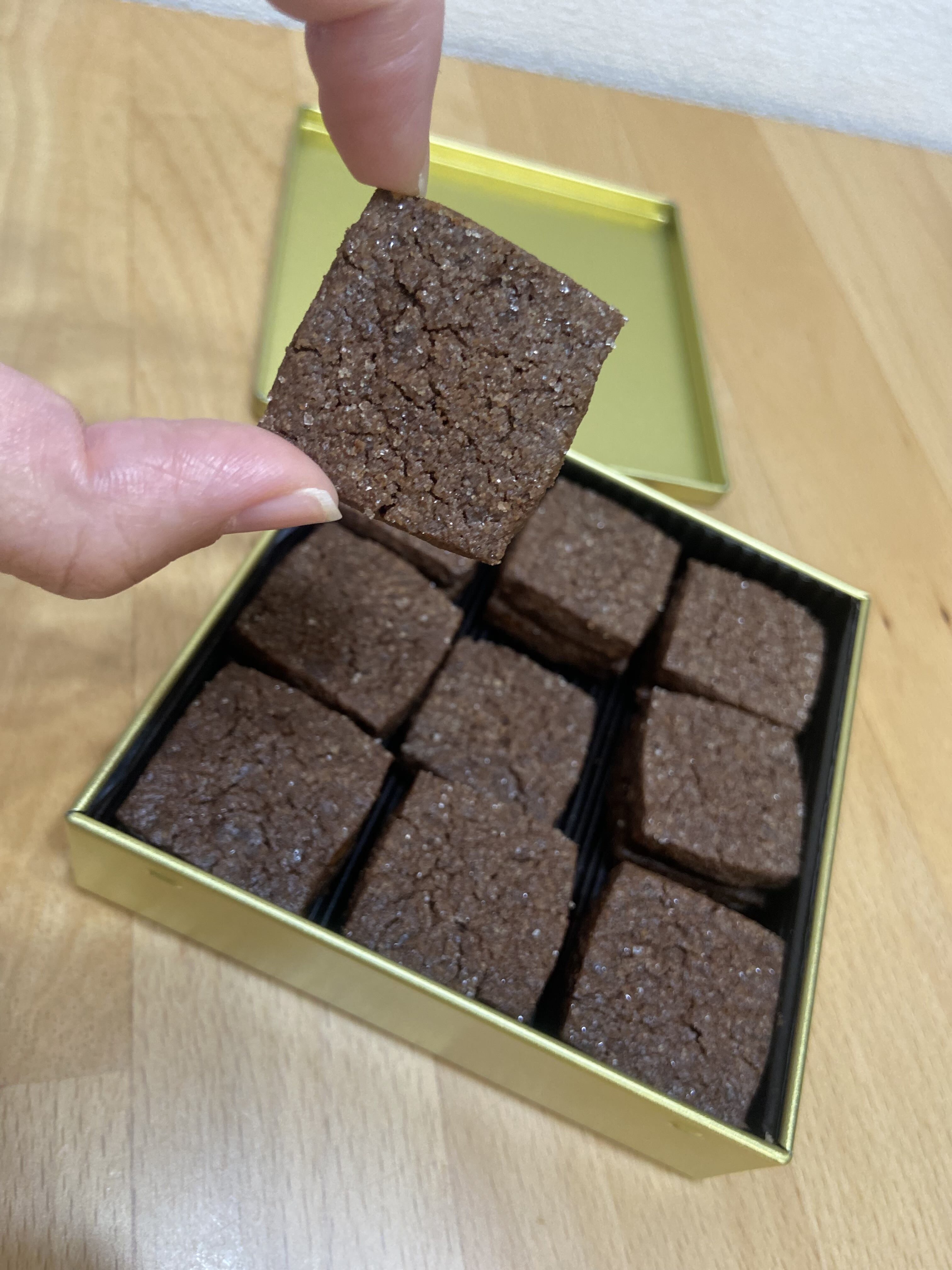 この缶の開けた時から、ちょっとカカオのような香りがふわっとしていたんですよね。この時点で、普通のチョコサブレではない気がします。笑